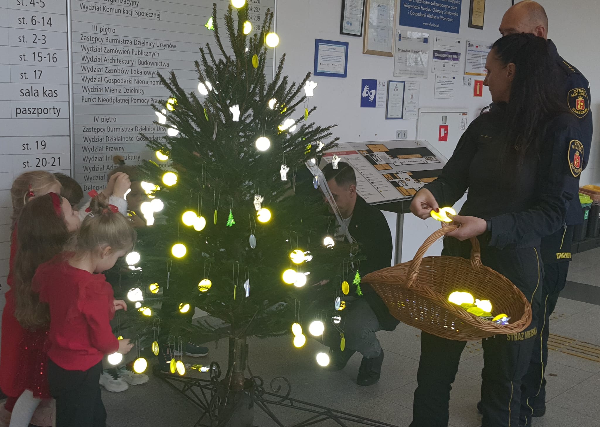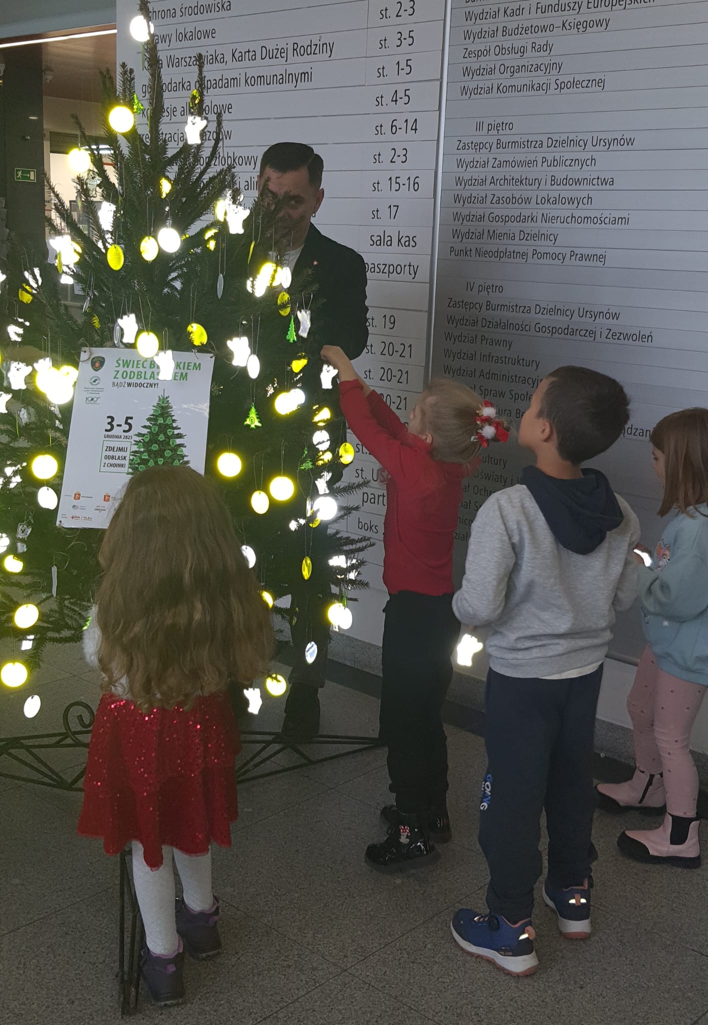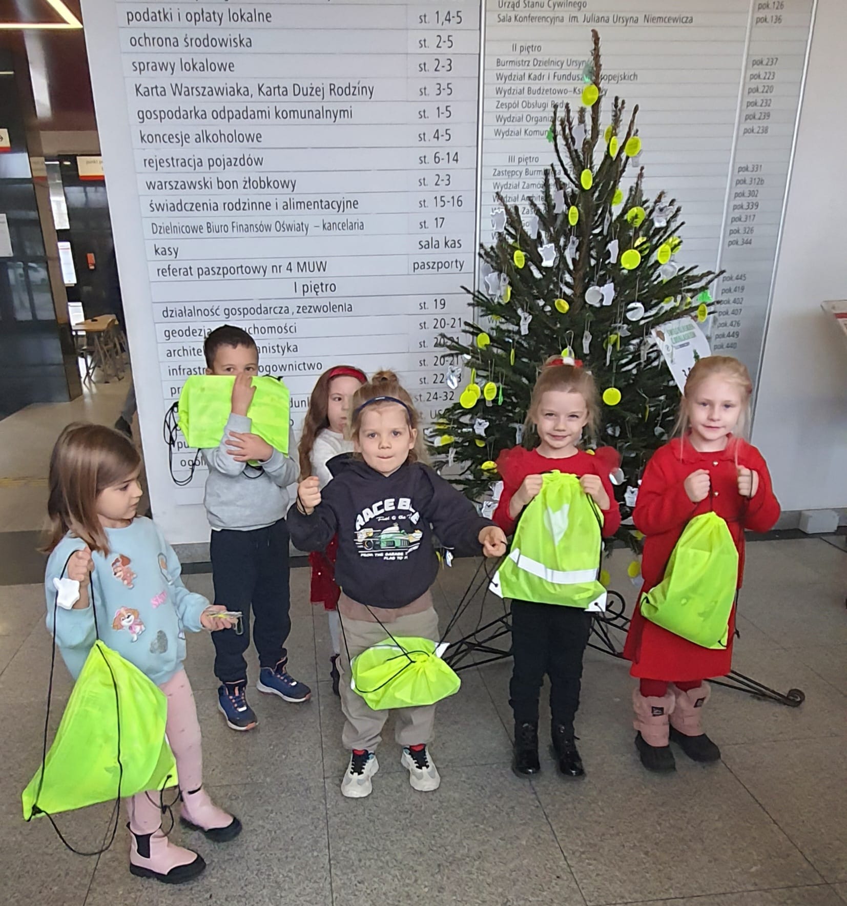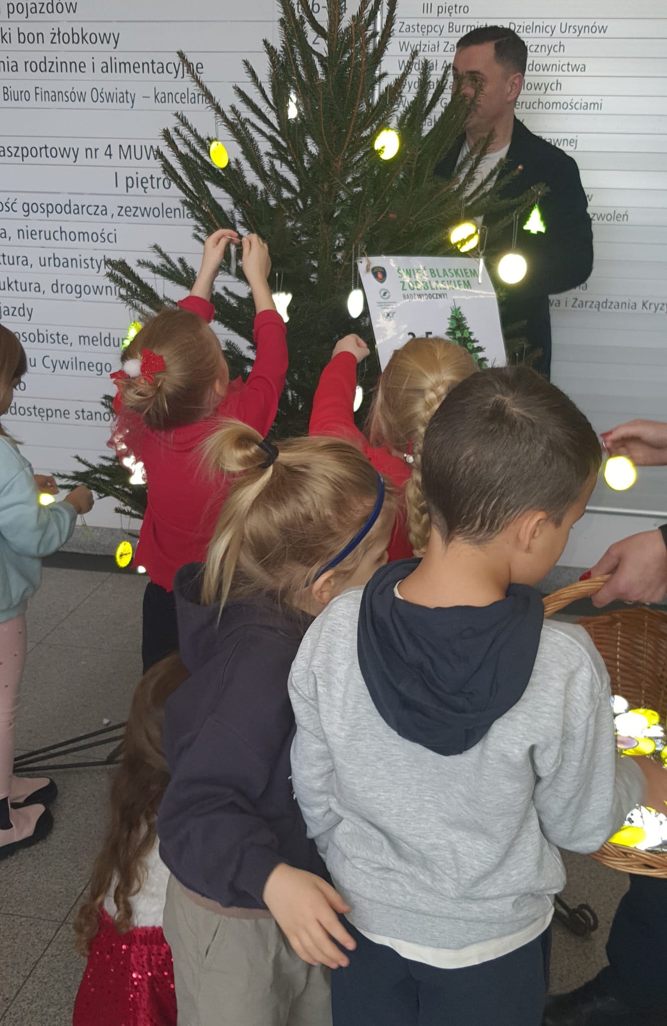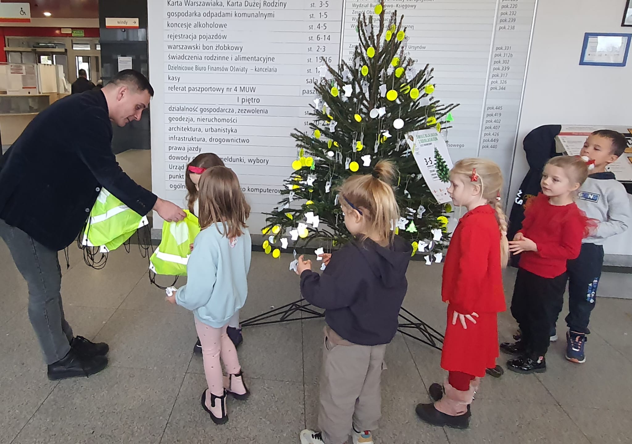 „Świeć blaskiem z odblaskiem” – dekorowanie Choinki w Urzędzie Dzielnicy Ursynów