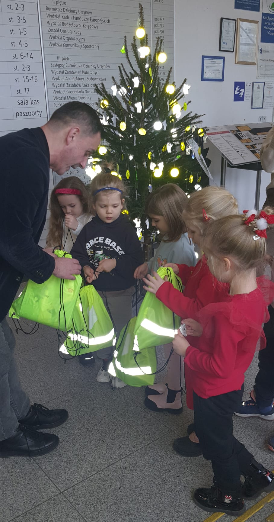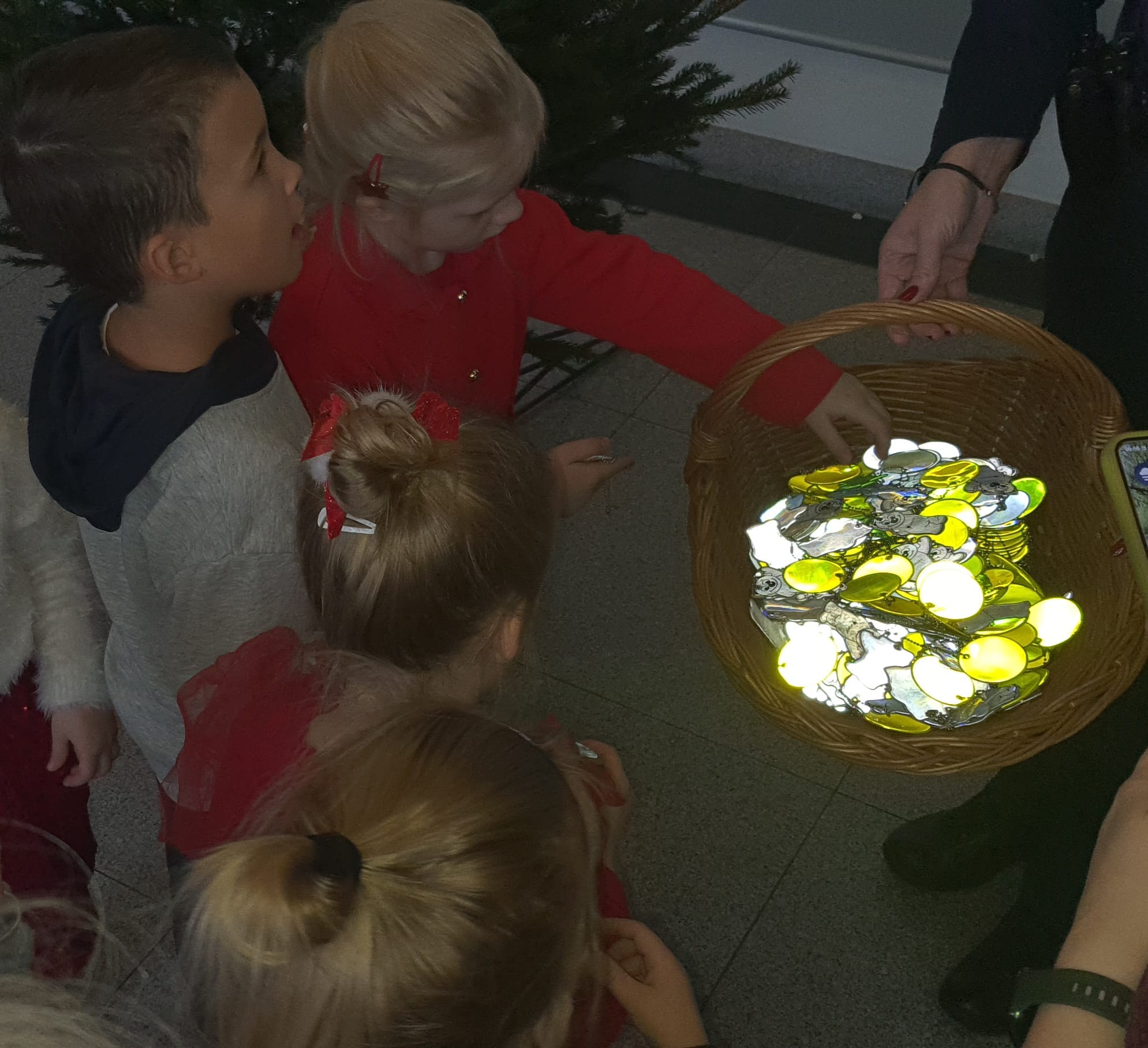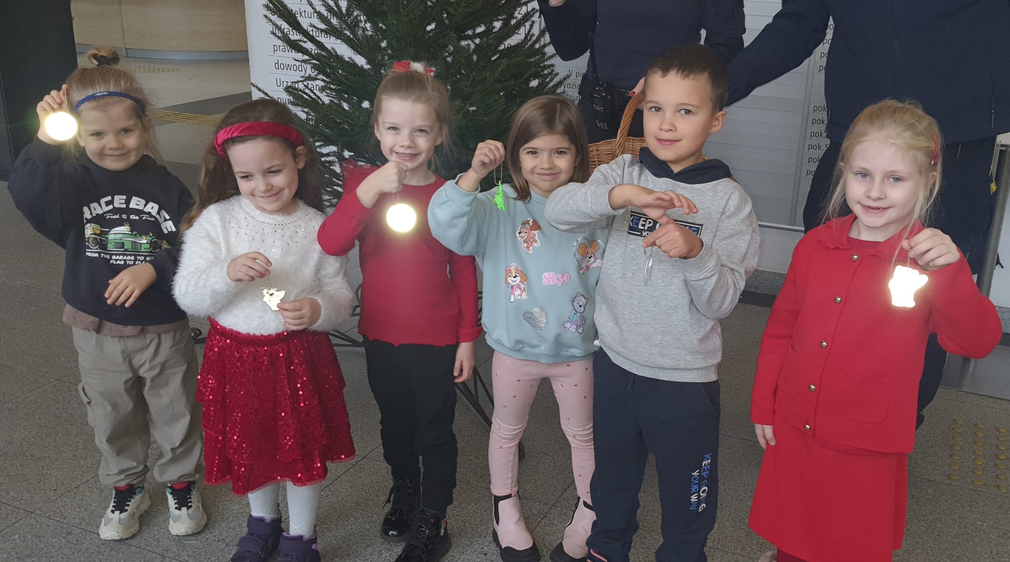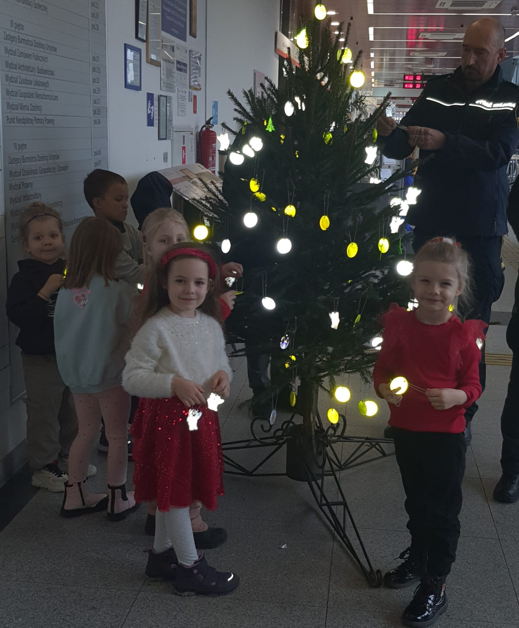 Atmosfera była niezwykle miła, pełna serdeczności i życzliwości. Całość miała uroczysty ton, a za sprawą odblaskowych breloczków mieniących się w blasku fleszy i dziecięcego entuzjazmu – również odrobinę świątecznej magii. Tegorocznym motywem przewodnim dekoracji było hasło: „Świeć blaskiem z odblaskiem”, które nie tylko nadało choince wyjątkowy wygląd, lecz także przypomniało o znaczeniu bezpieczeństwa i widoczności na drodze.