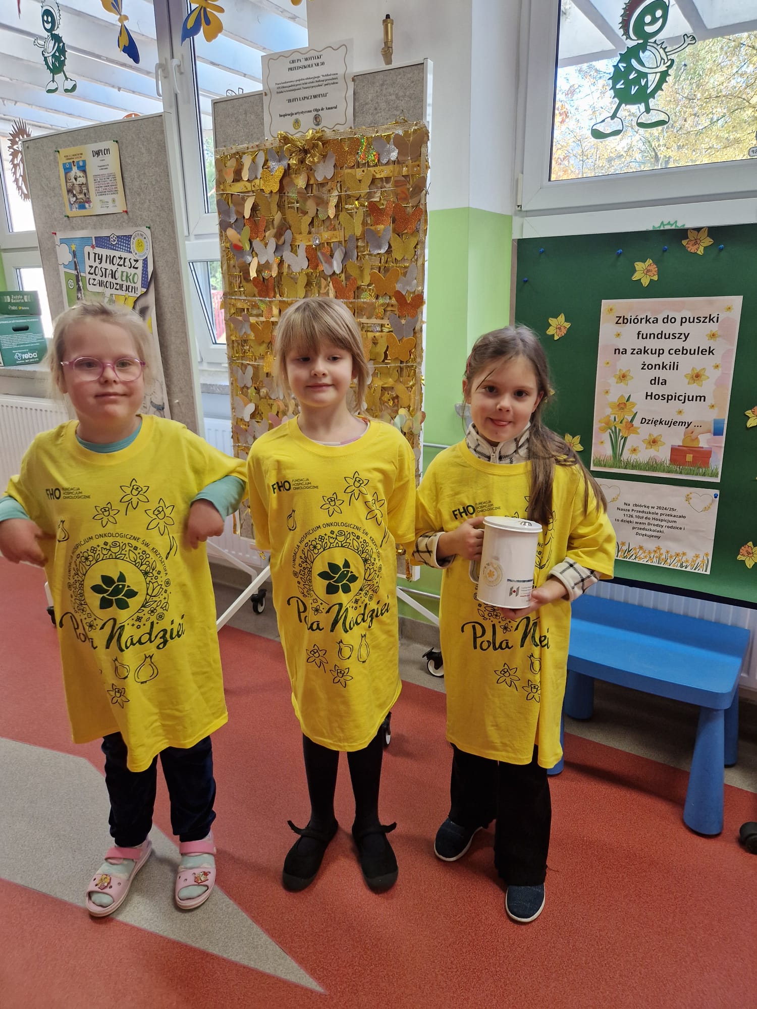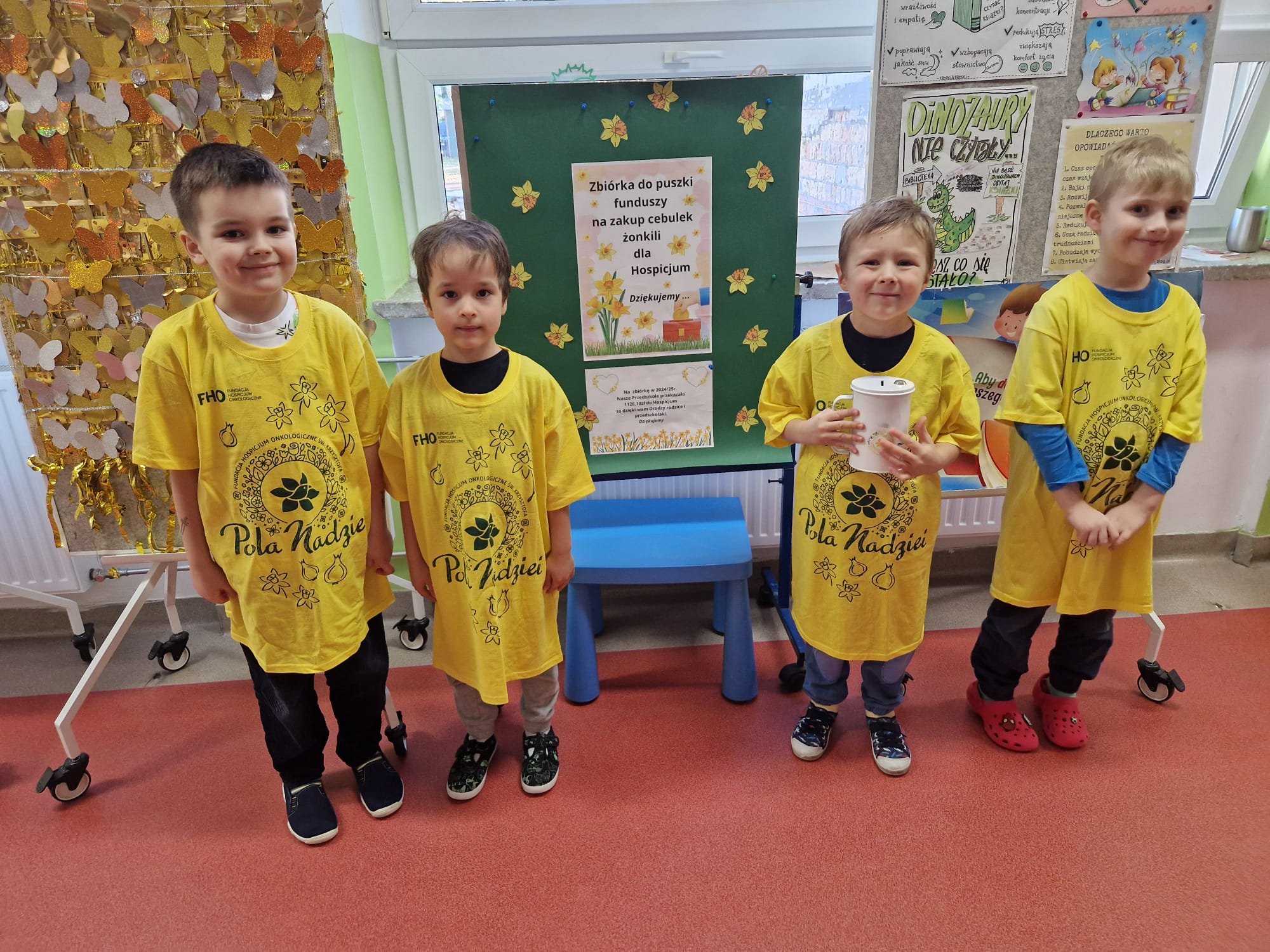 Dzięki Państwa zaangażowaniu zebraliśmy do naszej puszki pieniążki na cebulki, które w najbliższych dniach posadzimy w naszym ogrodzie przedszkolnym.