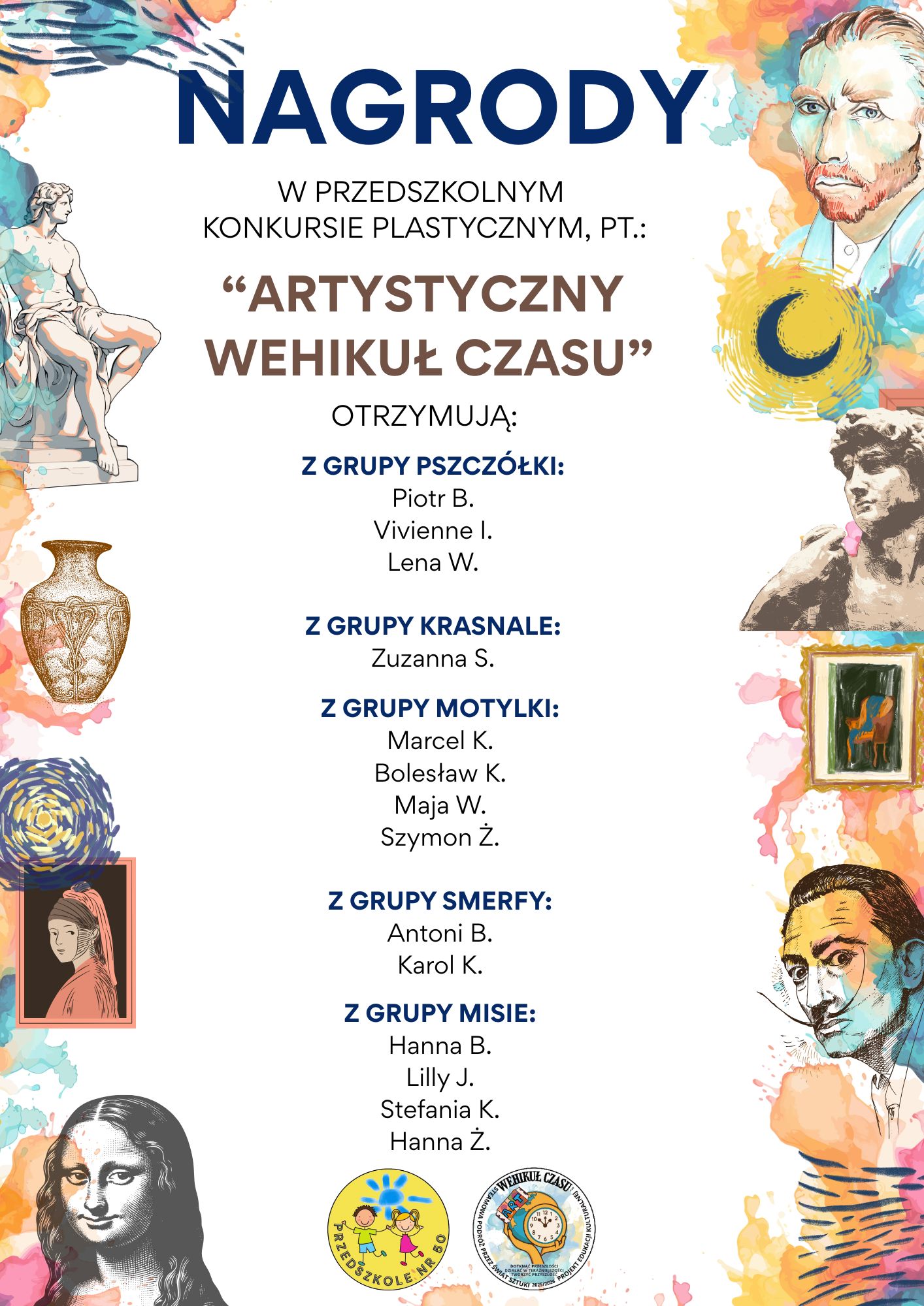 Z ogromną radością oglądaliśmy wszystkie niezwykle kreatywne prace naszych przedszkolaków, które wzięły udział w konkursie „Artystyczny wehikuł czasu”. Cieszy nas tak duże zainteresowanie i ogromne zaangażowanie dzieci.